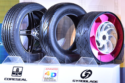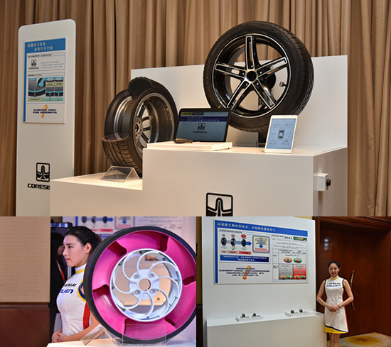 住友橡膠積極實踐“無備胎化”的節(jié)能理念,不斷推進技術革新,研發(fā)出了非充氣輪胎和密封膠輪胎,實現(xiàn)了車輛的輕量化和空間最大利用化效果。非充氣輪胎技術“GYROBLADE”將金屬輪轂,特殊樹脂輪輻和橡膠胎面巧妙結合,實現(xiàn)了不需要填充空氣也能滿足行駛性能需求的技術。既避免了普通輪胎保養(yǎng)維護的負擔,也為消費者提供多種色彩選擇,大大提升駕駛時尚感。密封膠輪胎技術“CORESEAL”在輪胎內(nèi)壁涂抹特殊材質(zhì)密封膠,當輪胎遭遇異物刺入也能確保不漏氣,大大提升了輪胎的安全性能。