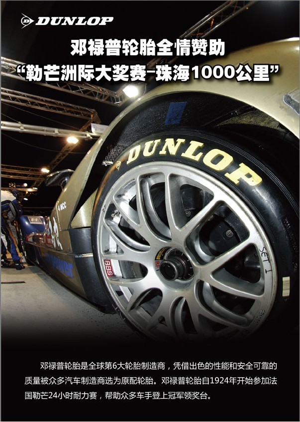 ??????? 這場(chǎng)賽事匯集了奧迪、標(biāo)致、寶馬、保時(shí)捷、法拉利、蘭博基尼、阿斯頓·馬丁和捷豹等全世界最著名的汽車制造商。洲際大獎(jiǎng)賽收官之戰(zhàn)-珠海1,000公里賽無(wú)疑將見證勒芒洲際之王的最終歸屬,本次珠海站比賽鄧祿普輪胎將為寶馬、奧迪、蘭博基尼等賽車提供比賽用輪胎。