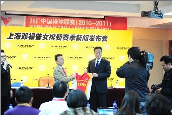 ??????? 北京時間12月21日,上海鄧祿普女子排球隊,在球隊主場上海盧灣體育館內(nèi)舉行了名為《拼搏出未來》的新聞發(fā)布會,暨鄧祿普連續(xù)三年冠名贊助上海女排簽約儀式。來自上海體育職業(yè)學院的黨委書記黃衛(wèi)方,院長、球類第一運動中心主任沈富麟,住友橡膠(常熟)有限公司董事長野尻、總經(jīng)理西口豪一等多位領(lǐng)導(dǎo),親臨現(xiàn)場。鄧祿普將持續(xù)三年冠名贊助上海女子排球隊,并為上海鄧祿普女排在女排聯(lián)賽新賽季加油打氣。