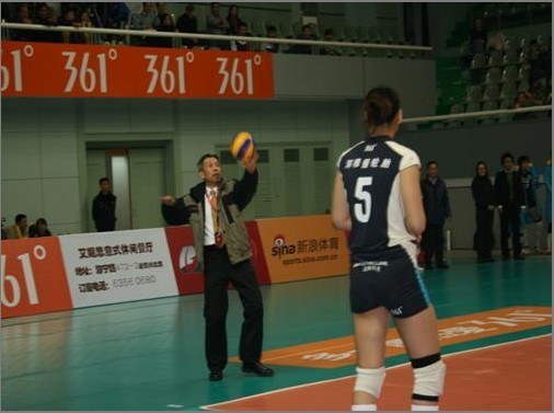 ??????? 發(fā)布會之后,上海鄧祿普女排在主場上海迎戰(zhàn)天津普利斯通女排。野尻董事長戰(zhàn)前為兩隊開首發(fā)球以示慶祝。