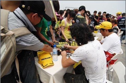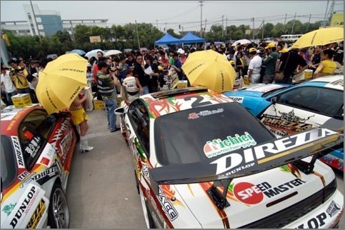 ??????? 2010年6月15日,2010鄧祿普DIREZZA杯全國(guó)汽車漂移系列賽上海站在上海天馬山賽車場(chǎng)拉開序幕,來自全國(guó)各地(含港澳臺(tái)地區(qū))的23位車手參加了比賽。住友橡膠(常熟)有限公司副總經(jīng)理西口豪一先生﹑企劃部部長(zhǎng)津崎正浩先生和企劃科科長(zhǎng)屈曉東先生參加了開幕式,西口豪一先生用中文向在場(chǎng)來賓發(fā)表了致辭,西口副總經(jīng)理還接受了CCTV-5等多家媒體的專訪。中國(guó)國(guó)家體育總局汽車摩托車運(yùn)動(dòng)管理中心副主任萬和平先生也應(yīng)邀到場(chǎng),并發(fā)表了致辭。
