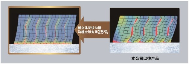 空前強大的WINTER MAXX針對冰面行駛帶來了“銳鋒技術”,新立體花紋溝槽設計,讓花紋片溝槽間隙變薄25%。這種設計使輪胎在制動時內部結構不易傾倒,如同尖銳的冰鎬,穩(wěn)穩(wěn)抓住冰面,增強了支撐力。采用的立體片狀花紋結構,與傳統(tǒng)冬胎產(chǎn)品相比增加了22%的片狀花紋,為輪胎增加了接地面積。由此兩方面,該技術大幅提高了輪胎的冰上制動力和冰雪路面抓地力。