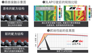 運用4D NANO DESIGN技術,提升膠料整體的剛性,成功實現僅在橡膠接觸地面時才發(fā)揮其柔韌性。通過增加與路面的貼合度,提升低溫時的發(fā)熱性,確保在行駛初期就能發(fā)揮強勁的又抓地性能。全新配方結構增加了微粒子炭黑,優(yōu)化了聚合物比率,提升輪胎的耐熱損耗性能。通過輪胎抓地性能的提升與抑制高溫時的性能變化,確保車輛在連續(xù)沖刺階段也能跑出穩(wěn)定的LAP時間,出色的實現環(huán)行賽道LAP時間縮短1.0%!
