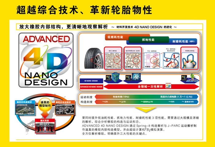 ADVANCED 4D NANO DESIGN技術使原材料的開發(fā)精度和效率實現(xiàn)了質的飛躍,全面提升了輪胎產(chǎn)品的低油耗性能、抓地性能和耐磨耗性能。該技術已應用到此次展出的鄧祿普環(huán)保輪胎ENASAVE NEXT Ⅱ,大幅降低了輪胎的滾動阻力。