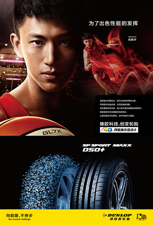 中國男籃名將劉曉宇,攻守自如、縱橫賽場,與鄧祿普飛馳自如的豪華SUV專用輪胎SP SPORT MAXX 050+共同呈現(xiàn)鄧祿普對極致性能的不懈追求。
