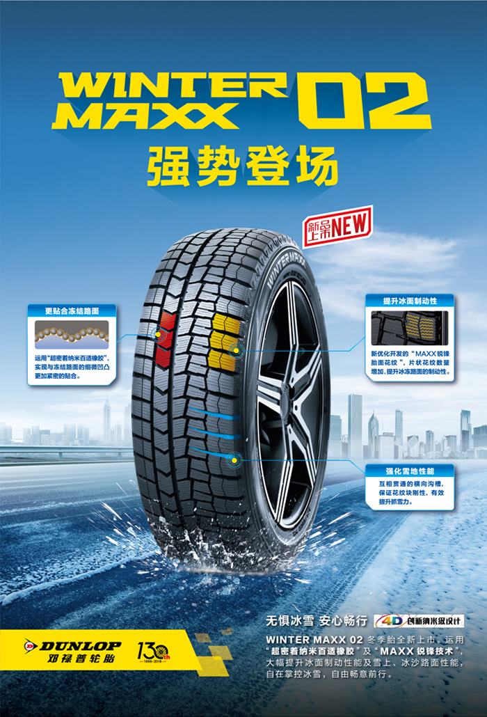 全新上市的WINTER MAXX02運(yùn)用鄧祿普獨(dú)有的“超密著納米百適橡膠”和“MAXX銳鋒技術(shù)”,大幅提升冰面制動(dòng)性能及雪上和冰沙路面性能,將為在冬季復(fù)雜路況下出行的車輛提供有力保障,助廣大車主無懼冰雪,安心暢行。
