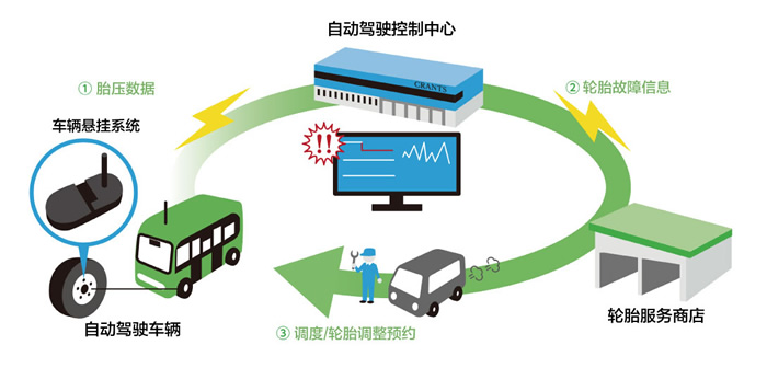 這一鏈接的完成,使得對無人駕駛車輛進(jìn)行胎壓遠(yuǎn)程監(jiān)控成為可能,同時(shí)將對無人駕駛狀態(tài)下發(fā)生爆胎等輪胎故障時(shí)的預(yù)防保養(yǎng)提供支持。今后還將進(jìn)一步針對胎壓異常的各種狀況,構(gòu)筑服務(wù)體系。