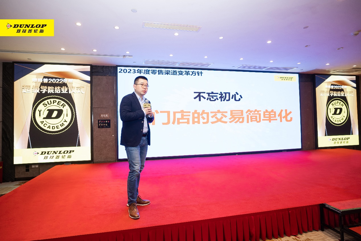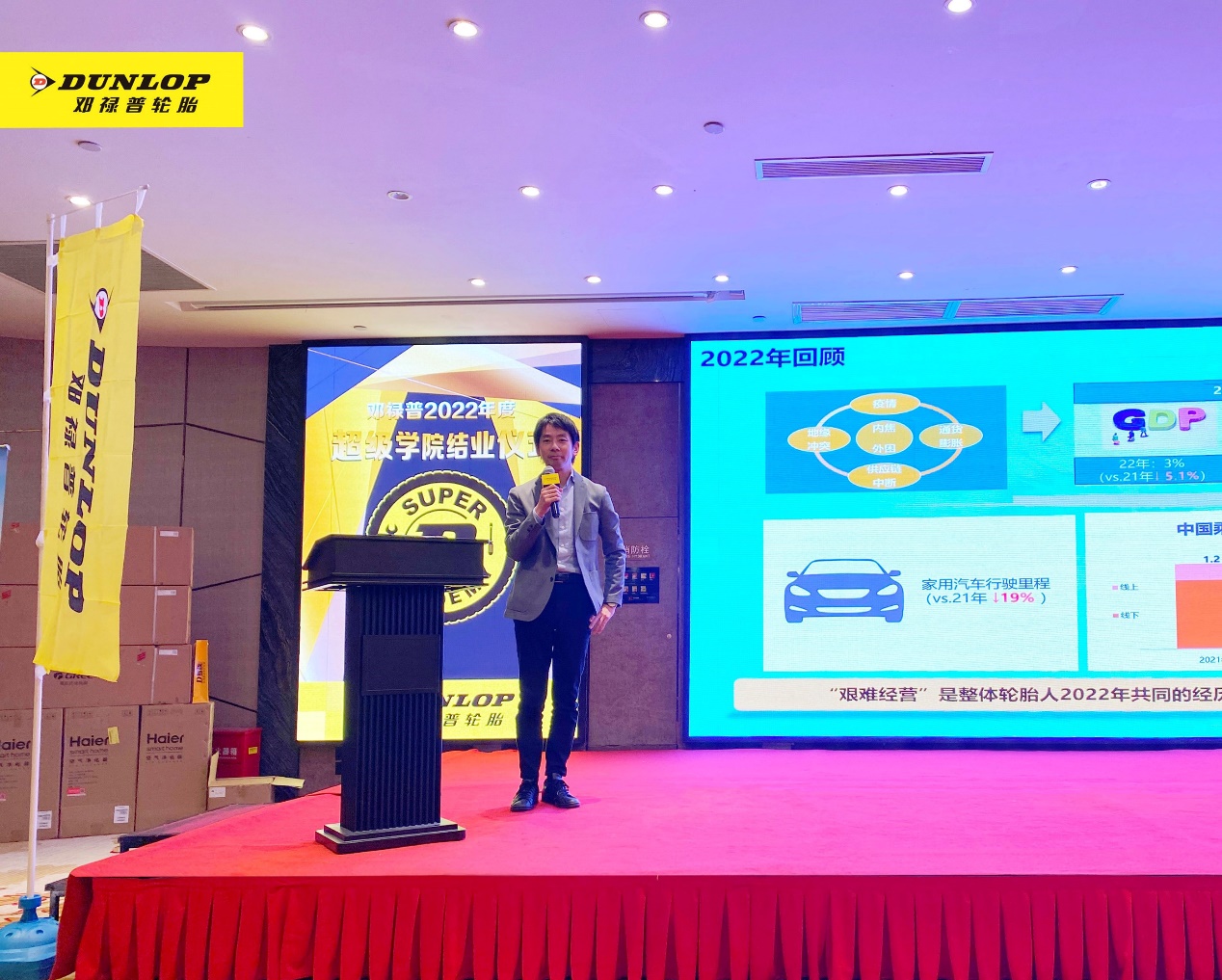 近日,2022年鄧祿普輪胎超級學(xué)院結(jié)業(yè)典禮于湖南長沙正式舉行。來自全國共計70多家近80名鄧祿普優(yōu)秀門店的人員參加了本次典禮。期間,鄧祿普輪胎銷售有限公司總經(jīng)理宮川義宏和鄧祿普輪胎銷售有限公司零售渠道部總監(jiān)孫世浩發(fā)表了行業(yè)總結(jié)和政策分享。不僅對2022年輪胎行業(yè)的現(xiàn)狀進(jìn)行了深度剖析,也為2023年鄧祿普的發(fā)展指明了方向。此外,鄧祿普超級學(xué)院結(jié)業(yè)典禮還就“價值轉(zhuǎn)型門店賦能”主題,進(jìn)行了全面探討。