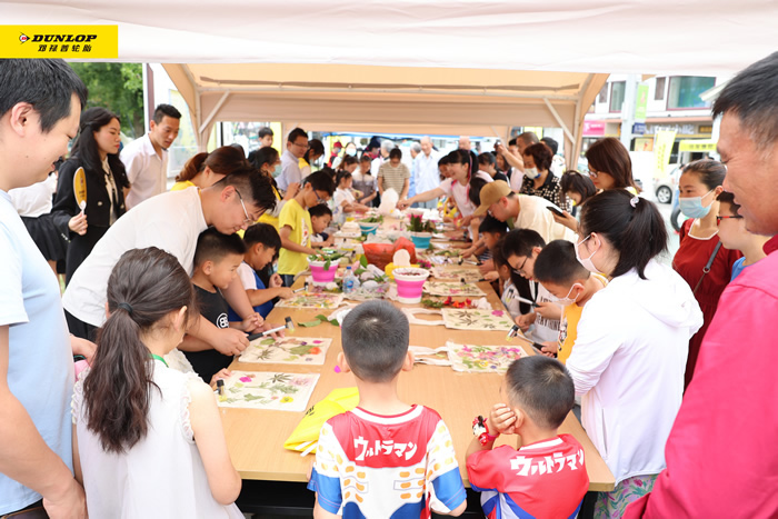 本著環(huán)保從娃娃抓起的初衷,住友橡膠此次特別策劃了趣味植物拓印活動,讓小朋友們自己動手體驗不使用任何化學(xué)物質(zhì)的環(huán)保印染工藝。只見現(xiàn)場的小朋友們經(jīng)過一番精心構(gòu)思后,開始用拓印錘敲打自己選好的花瓣和葉片?;顒蝇F(xiàn)場充滿了歡聲笑語,伴隨著歡快的敲擊聲和花草香,一幅幅色彩斑斕、別具一格的夏日畫卷在環(huán)保袋上徐徐展開。孩子們看到自己制作完成的世界上獨一無二的環(huán)保袋,露出了開心和滿足的笑容。