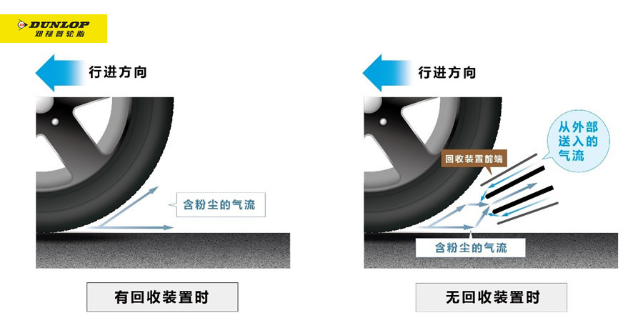 針對TRWP擴散階段,住友橡膠與德國東法利亞應用科學大學空氣動力學專家Falk Klinge教授合作,開發(fā)出一種利用車輛行駛中氣流變化的TRWP回收裝置。該裝置可通過引導輪胎周邊氣流,有效捕集因摩擦產(chǎn)生的微細顆粒。
