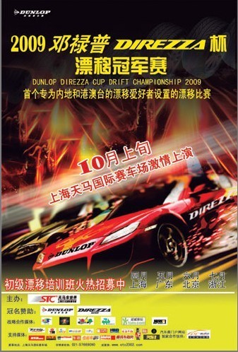 ??????? 今年,“鄧祿普”牽手“天馬車(chē)世界”冠名贊助了“2009鄧祿普DIREZZA杯漂移冠軍賽”,比賽定于 “十?一黃金周”期間在上海天馬國(guó)際賽車(chē)場(chǎng)舉行!與往年舉辦的漂移賽事廣大漂移愛(ài)好者們只能坐在看臺(tái)上欣賞D1車(chē)手們的精彩表演不同,本屆漂移冠軍賽是一次完全針對(duì)漂移愛(ài)好者而舉辦的,并通過(guò)海選及初級(jí)和高級(jí)漂移培訓(xùn)班特訓(xùn),最終的佼佼者來(lái)爭(zhēng)奪賽事冠軍的一次漂移盛會(huì)。